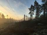 Beskrivning: Skog i skymning i ett höstigt Borensberg