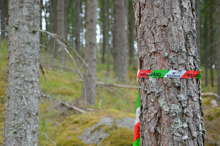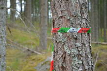 Beskrivning: Naturvårdstejp, tejp, naturvård, bark, snitsel