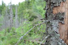 Beskrivning: Granbarkborreangripna träd, vindfällen