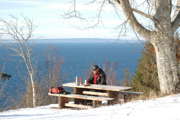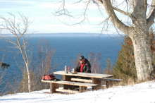 Beskrivning: Vinterpicknick med utsikt över Vättern, Ekopark Omberg
