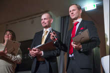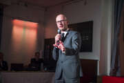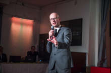 Beskrivning: mikrofon, håller tal, Årets förbättring 2015 awardmiddag, gala, fest, party, award