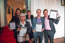 Beskrivning: Anette Waara, Eva Ståhl, Karin Ericsson, Erik Sjögren och Esbjörn Wahlberg, vinnare i kategorin Innovation, Årets förbättring 2015 awardmiddag, gala, fest, party, award
