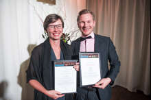 Beskrivning: Eva Ståhl och Karin Ericsson, vinnare i kategorin innovation, Årets förbättring 2015 awardmiddag, gala, fest, party, award