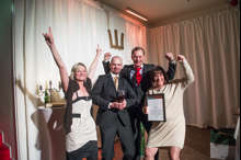 Beskrivning: Vinnarna i kategorin kundfokus, Årets förbättring 2015 awardmiddag, gala, fest, party, award