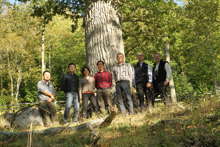 Beskrivning: Besök från kinesiska ambassaden, i Ekopark Omberg, från Sveaskog: Olof Johansson, Fredrik Klang och Per Petersson, kinabesök, besökare från kina