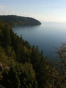 Beskrivning: Ekopark Omberg, skogsvy, landskap, vatten