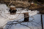 Beskrivning: Stubbar, våtmark, Ekopark Raslången