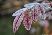 Beskrivning: Löv, blad, frost, rött, växt, is