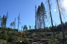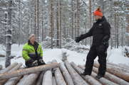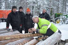 Beskrivning: logistik, virkesbil, lastbil, leverans, transport, timmertransport, transportering av virke, Brattby såg exkursion, samarbete mellan Sveaskog och Brattby Sågverks AB, trä, produkter och tjänster,