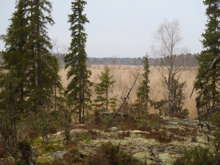 Beskrivning: Gammal tall växande ut i Södra Åsjön