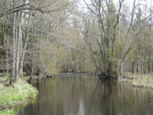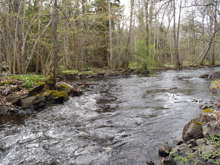 Beskrivning: Ekopark Forsmark, Forsmarksån i vårgrönska,