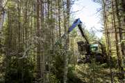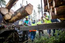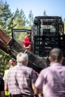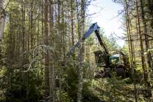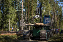 Beskrivning: Marknad och resultatområdeschefer på exkursion, teknik, utveckling, skogsbruk, avverkningsmetodik, metod, forum sveaskog nr 5 2013, information, Hans Welff, Tobias Norrbom, resultatområdeschefer, marknadsområdeschefer, RO-chefer, MO-chefer, effekter av röjning, dialog, teknikspaning pågår.