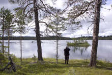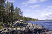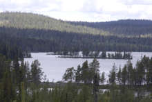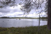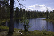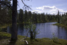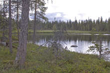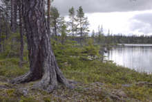 Beskrivning: Tall vid sjö. Ekopark Tjadnes-nimtek.