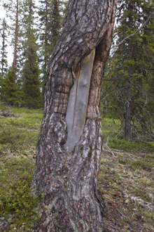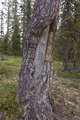 Beskrivning: Barklöst parti på träd, spår efter samiskt brukande. Ekopark Tjadnes-nimtek.