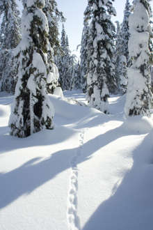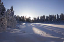 Beskrivning: Spår i snö. Ekopark Tjadnes-nimtek