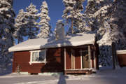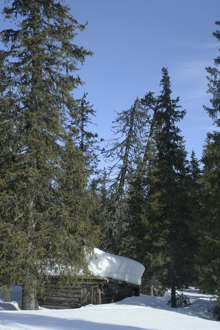 Beskrivning: Stuga, hus, vinter, vinterlandskap