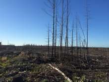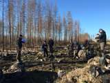 Beskrivning: Efter skogsbrand, pånyttfödelse, Kundbesök i brandområdet utanför Sala
