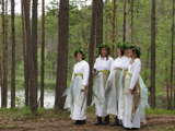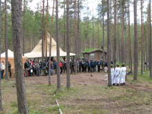 Beskrivning: Vistror sjunger intill Missutjärn under invigningen av ekopark Skatan