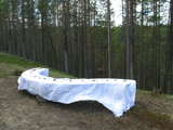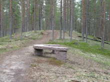 Beskrivning: Oinvigd stenbänk i Ekopark Skatan