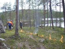 Beskrivning: Naturvårdsbränning i ekopark Skatan