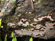 Beskrivning: Ekopark Karhuvaara, artsökning på granlåga, skog, gran, fälld, mossa