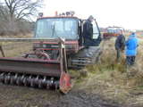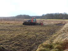 Beskrivning: Fräsning pågår vid Västeräng, med pistmaskin, Ekopark Ridö Sundbyholmsarkipelagen