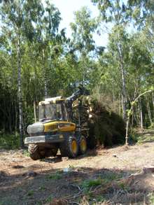 Titel: Skogsmaskin tar ut gran ur lövskog