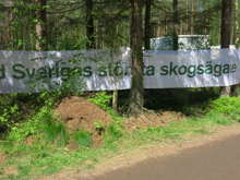 Beskrivning: Sveaskog på SkogsElmia, skogsmässa, jönköping, marknadsföring, utanför montern, Sveriges största skogsägare, skylt, banner