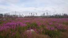 Beskrivning: Mjölke, mölkört, blommor, dunörtsväxter, äng, rosa äng, Rallaros, Ekopark Öjesjöbrännan, liv efter brand, växtlighet, liv, pånyttfödelse