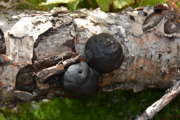 Titel: Svarta svampar på fallet träd