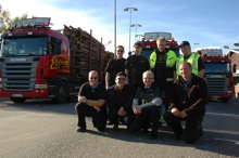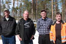 Beskrivning: Lennart Nyström, Lars-Olof Johansson och Bo Axelsson kör skördare. Skotaren körs av entreprenören Stefan Nyström.