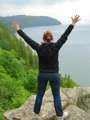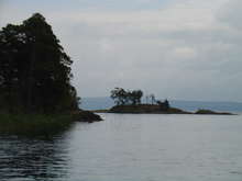 Beskrivning: Kräftfiske, båt på sjö.