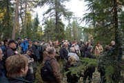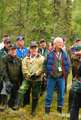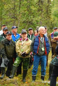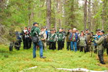 Beskrivning: Kungen och de 18 älgarna, Den 22 oktober arrangerade Sveaskog traditionsenligt den Kungliga jakten i Kloten i Bergslagen, kungen omringad av reportrar