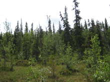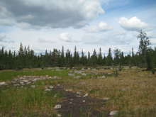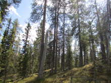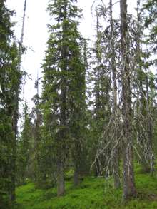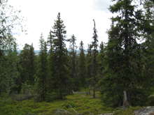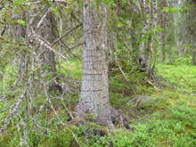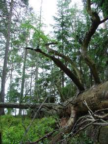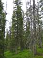 Beskrivning: Bilder från helikopterinventeringen i Västerbotten efter stormen Hilde som inträffade den 16 november 2013, Brutna stammar, stormfällning, stormskador, landskap