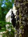 Beskrivning: Ekoxehona, Ekoxe, Böda ekopark, insekter, insekt, svart insekt, träd, trädstam, klättra, sommar