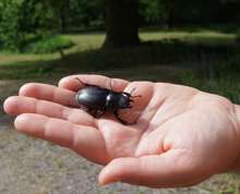 Beskrivning: Ekoxehona, Ekoxe, Böda ekopark, insekter, insekt, svart insekt, hand, sommar