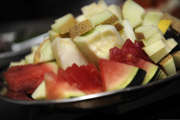 Beskrivning: Mat, buffé, vattenmelon, honungsmelon, melon, lunch, skogskväll, skogsdag, skogsevenemang, landshypotek samarbete, virkesleverantörer, virkesköpare, skogsägare, möte, samling, konferens, utveckling, dialog, träff, framväxt.