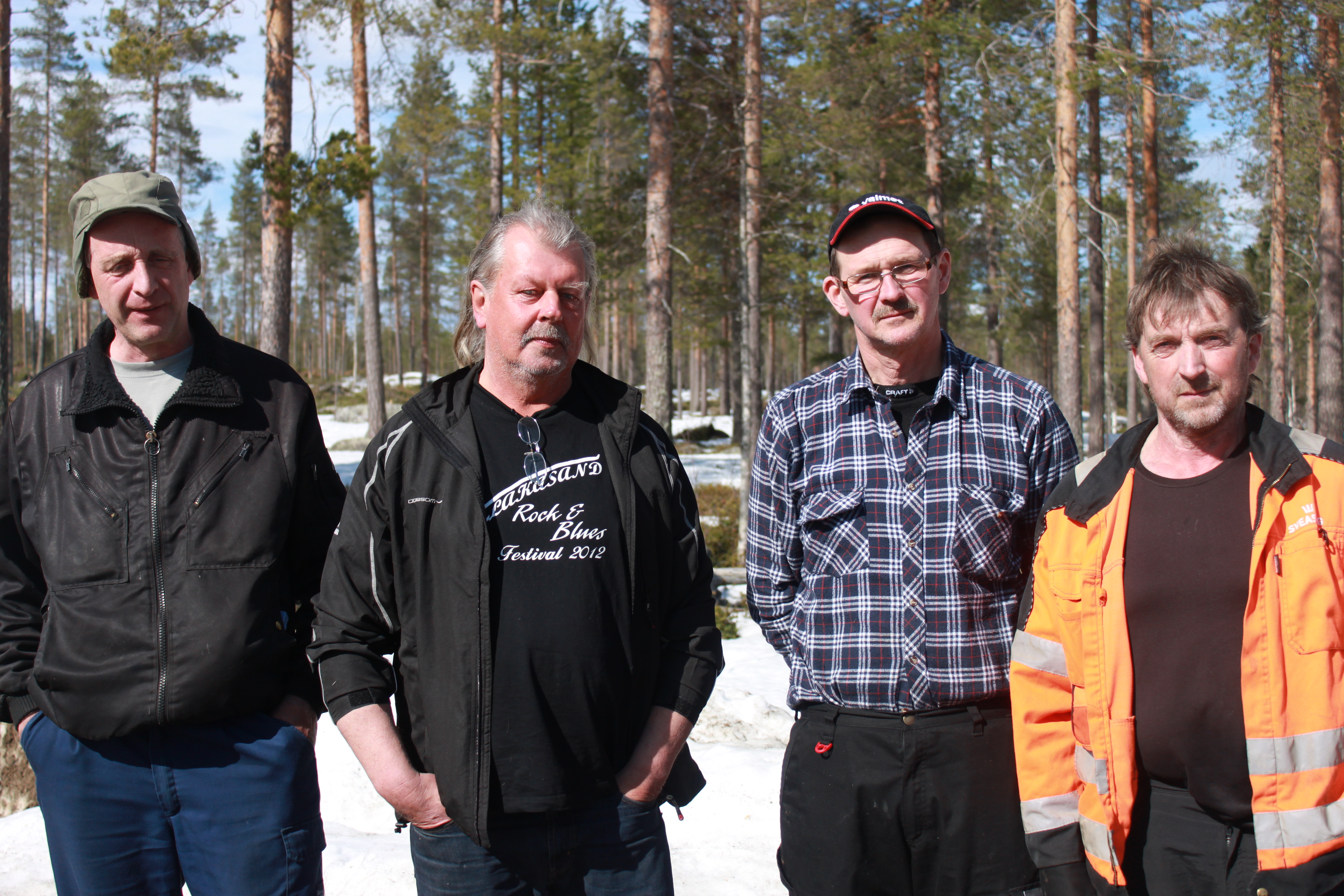 - Beskrivning: Lennart Nyström, Lars-Olof Johansson och Bo Axelsson kör skördare. Skotaren körs av entreprenören Stefan Nyström.