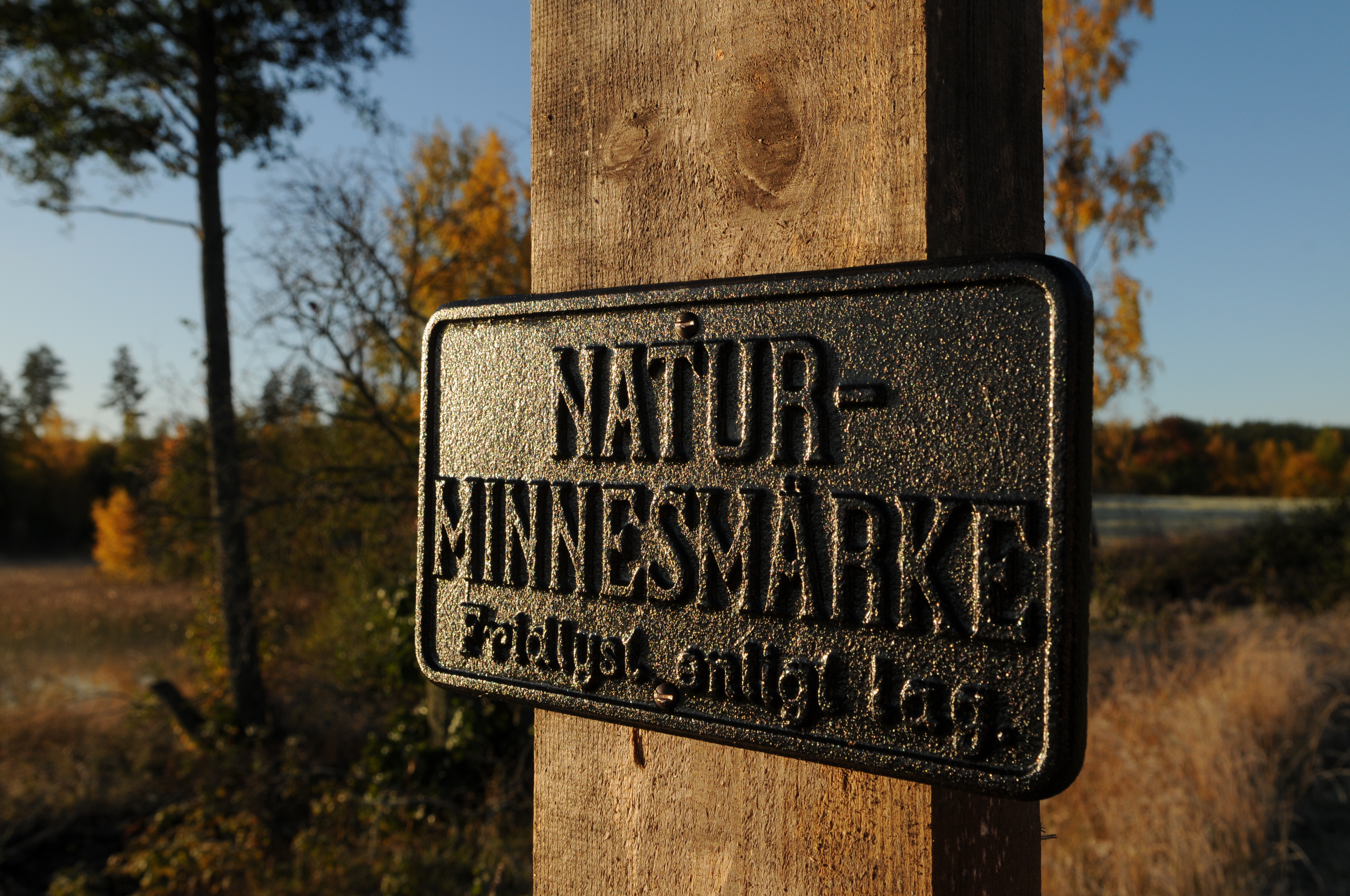 • Beskrivning: Skylt, Naturminnesmärke, fridlyst enligt lag.