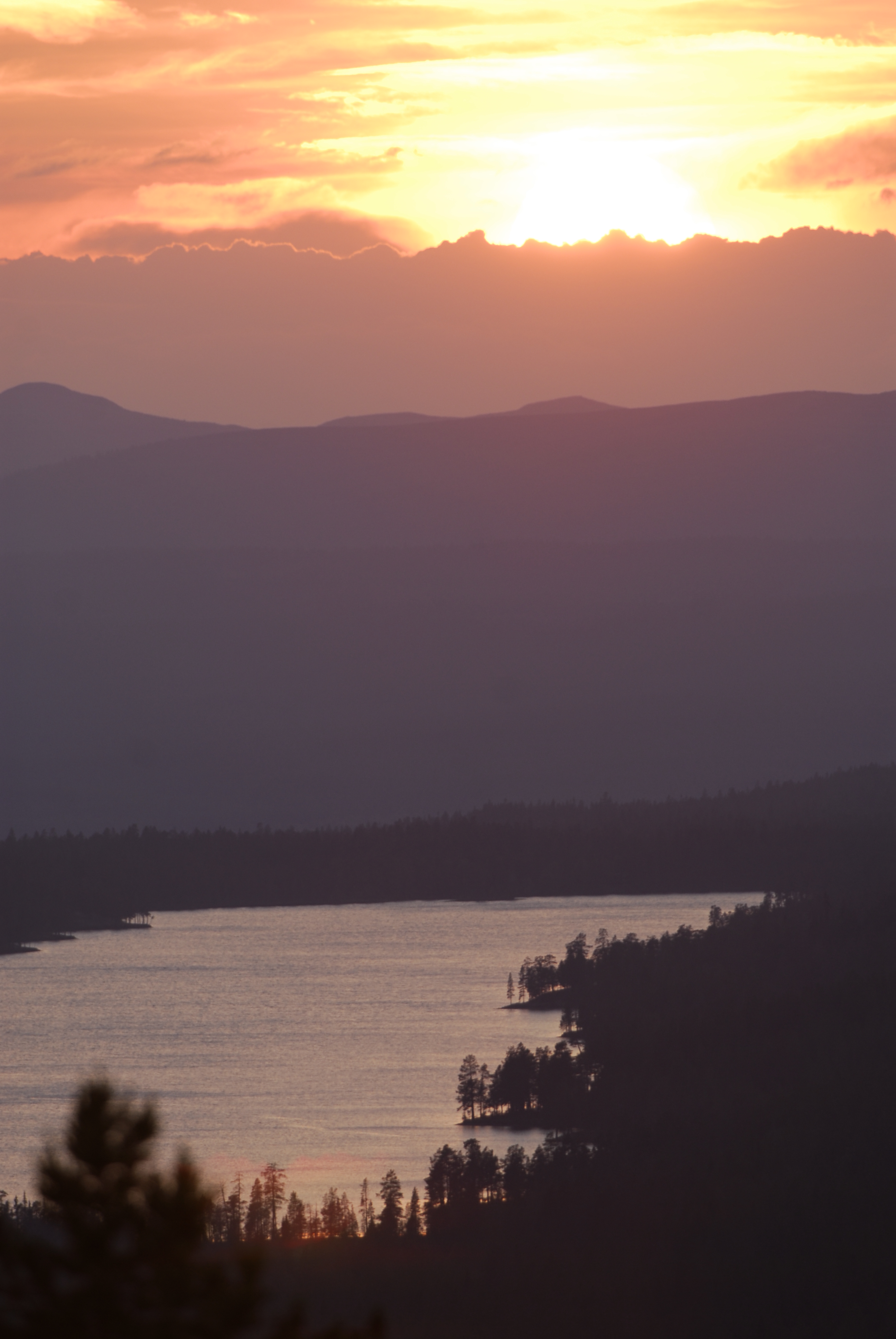- Beskrivning: Sol bakom bergen, rosa himmel