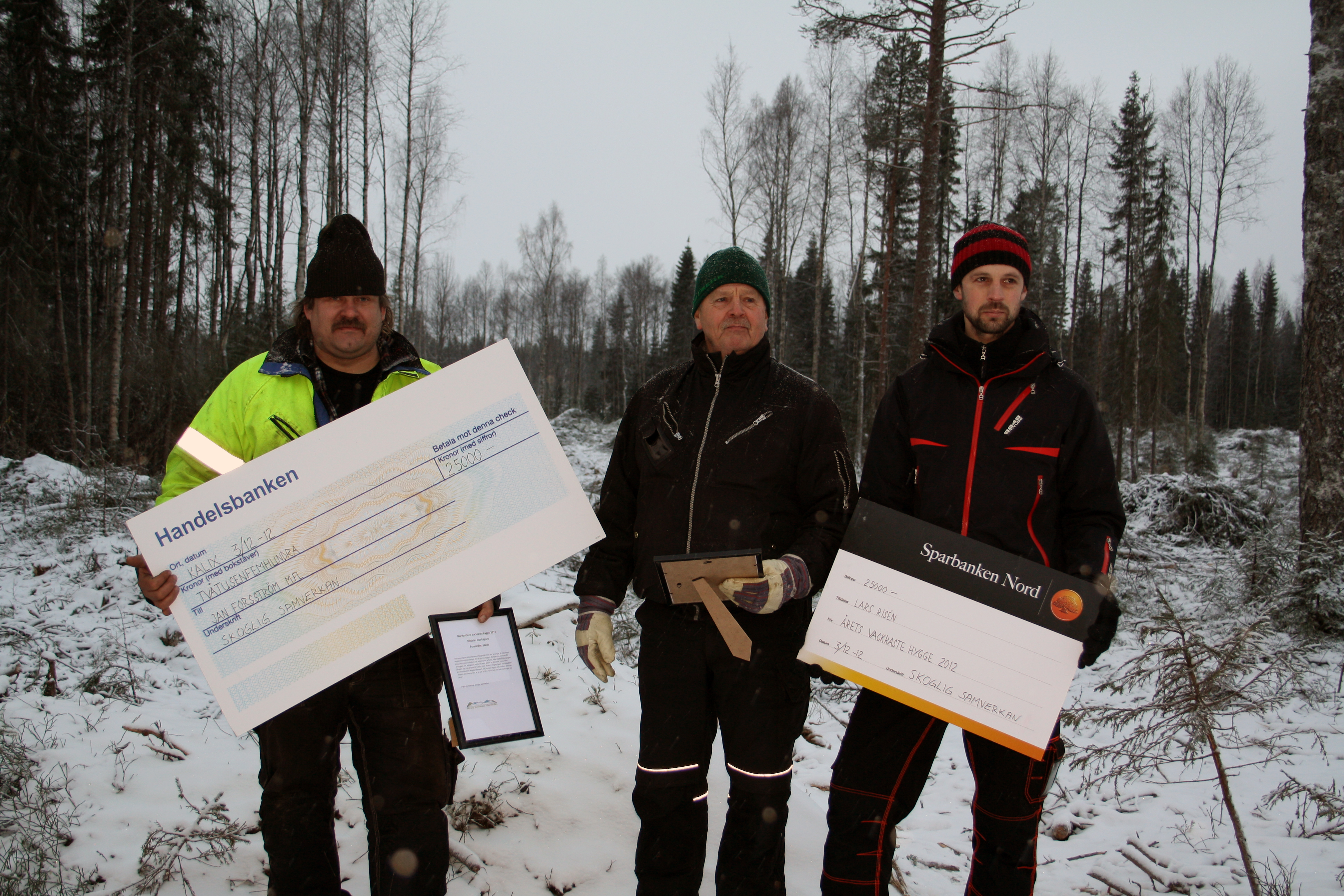 • Beskrivning: Norrbottens vackraste hygge 2012 utanför Pålänge. Jan Forsström, markägare, Lars Risén och Fredrik Risén, entreprenörer