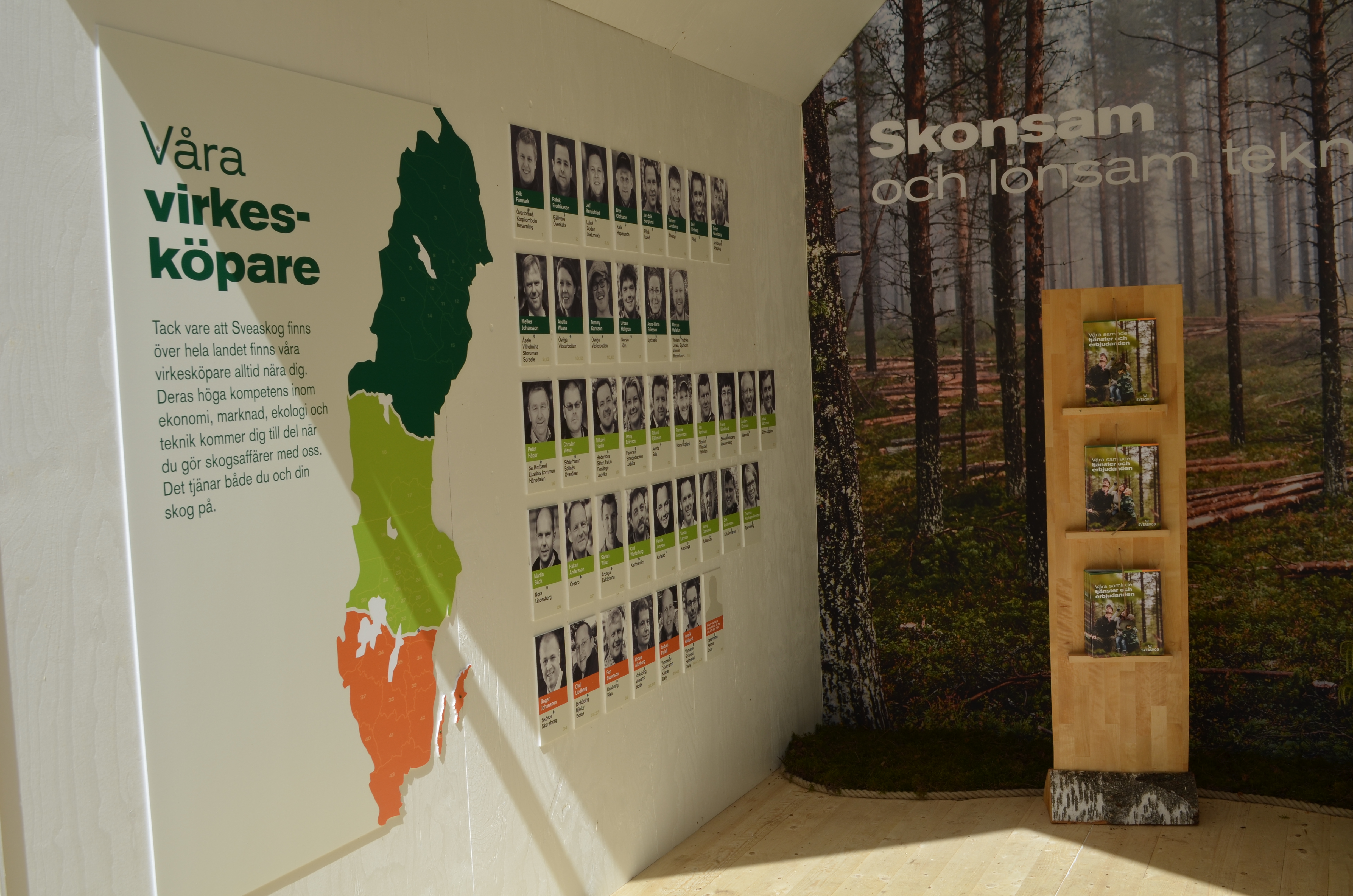 - Beskrivning: Sveaskogs medverkan på Elmia-mässan, Elmia Wood, våra virkesköpare, marknadsföring, monter, Sveaskogs montrar, affischering