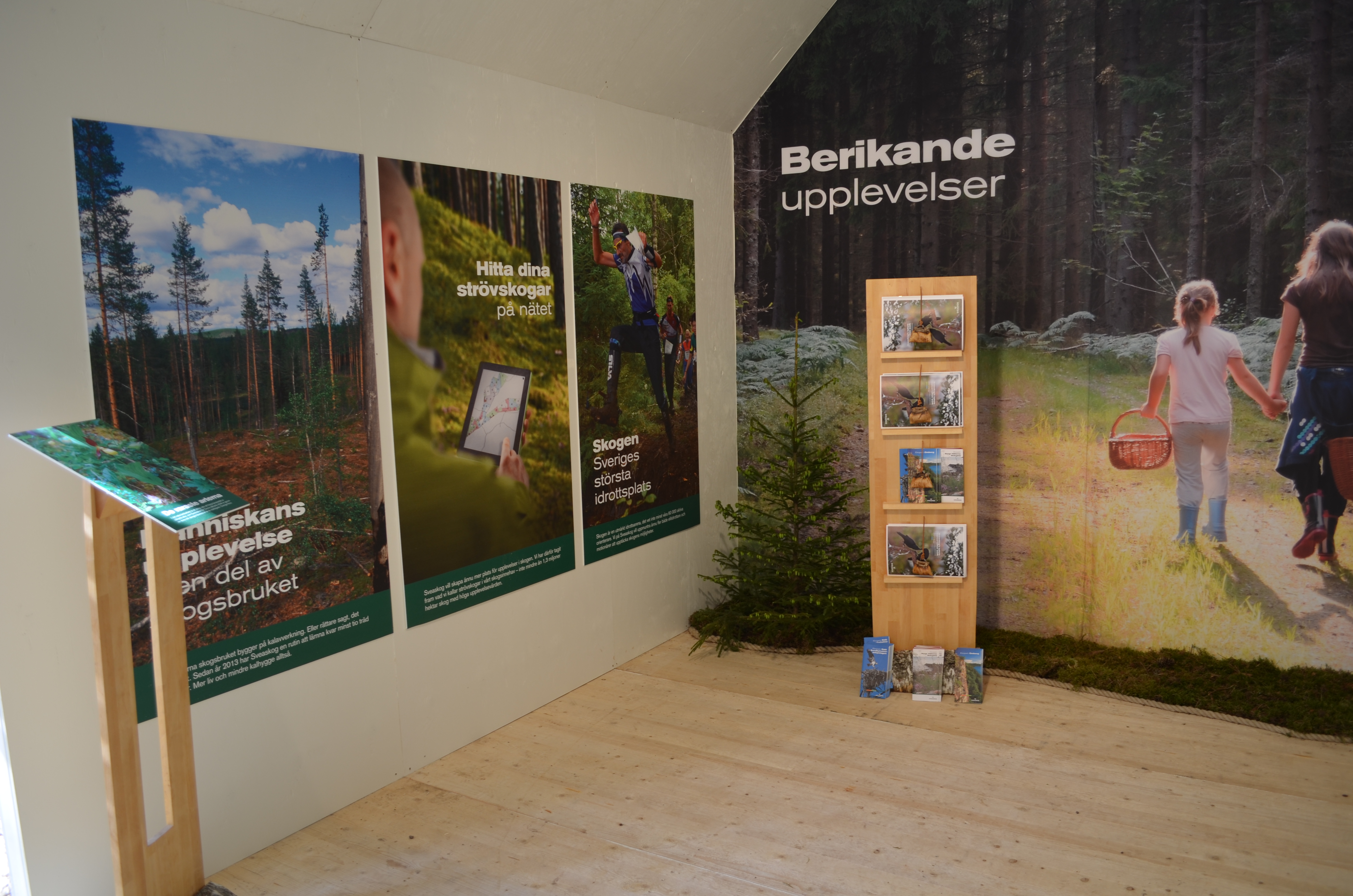 - Beskrivning: Sveaskogs medverkan på Elmia-mässan, Elmia Wood, monter, Sveaskogs monter, berikande upplevelser, marknadsföring, affischering