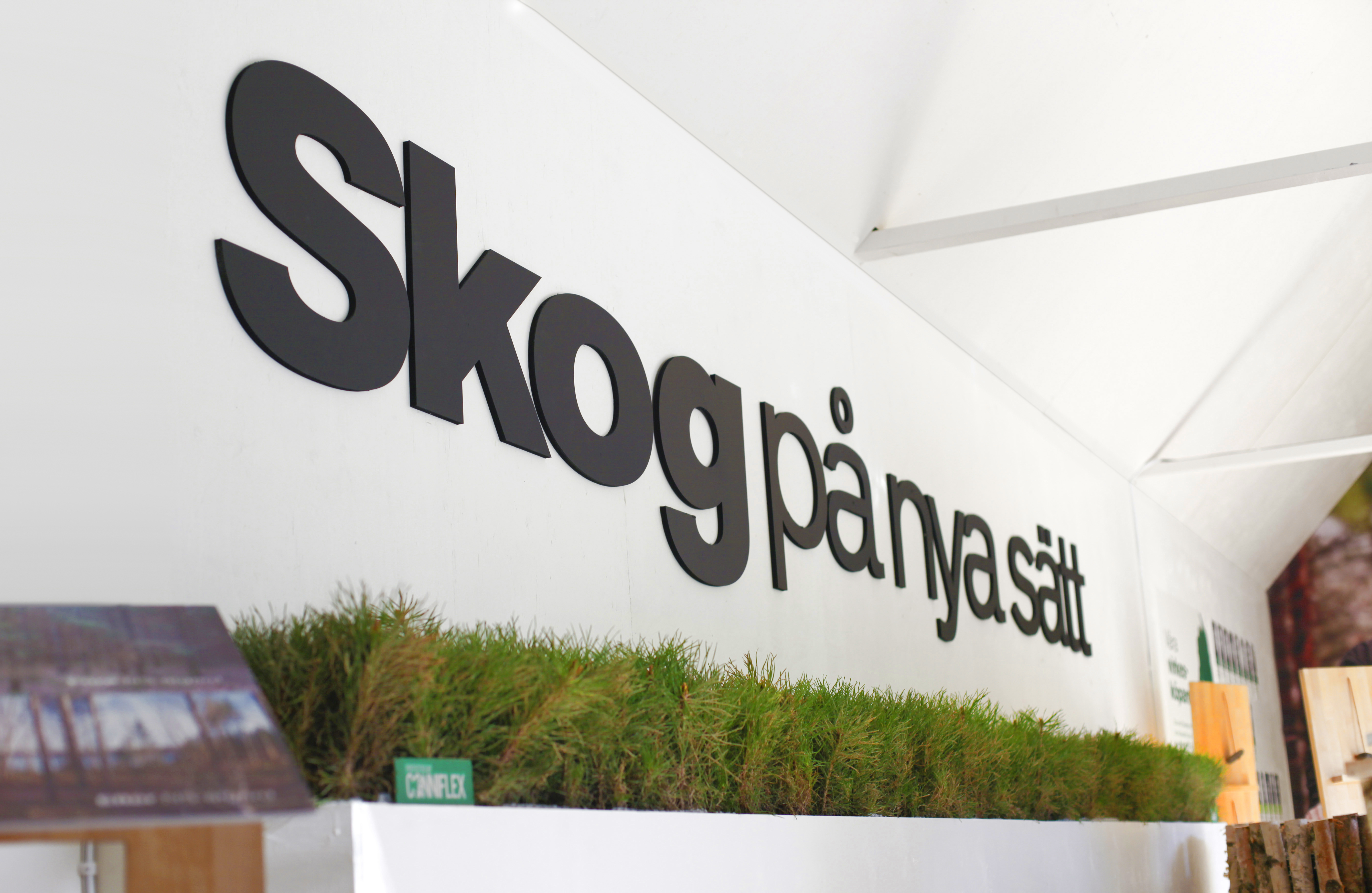 - Beskrivning: Sveaskogs medverkan på Elmia mässa, Elmia Wood, skog på nya sätt, monter, Sveaskogs monter, marknadsföring