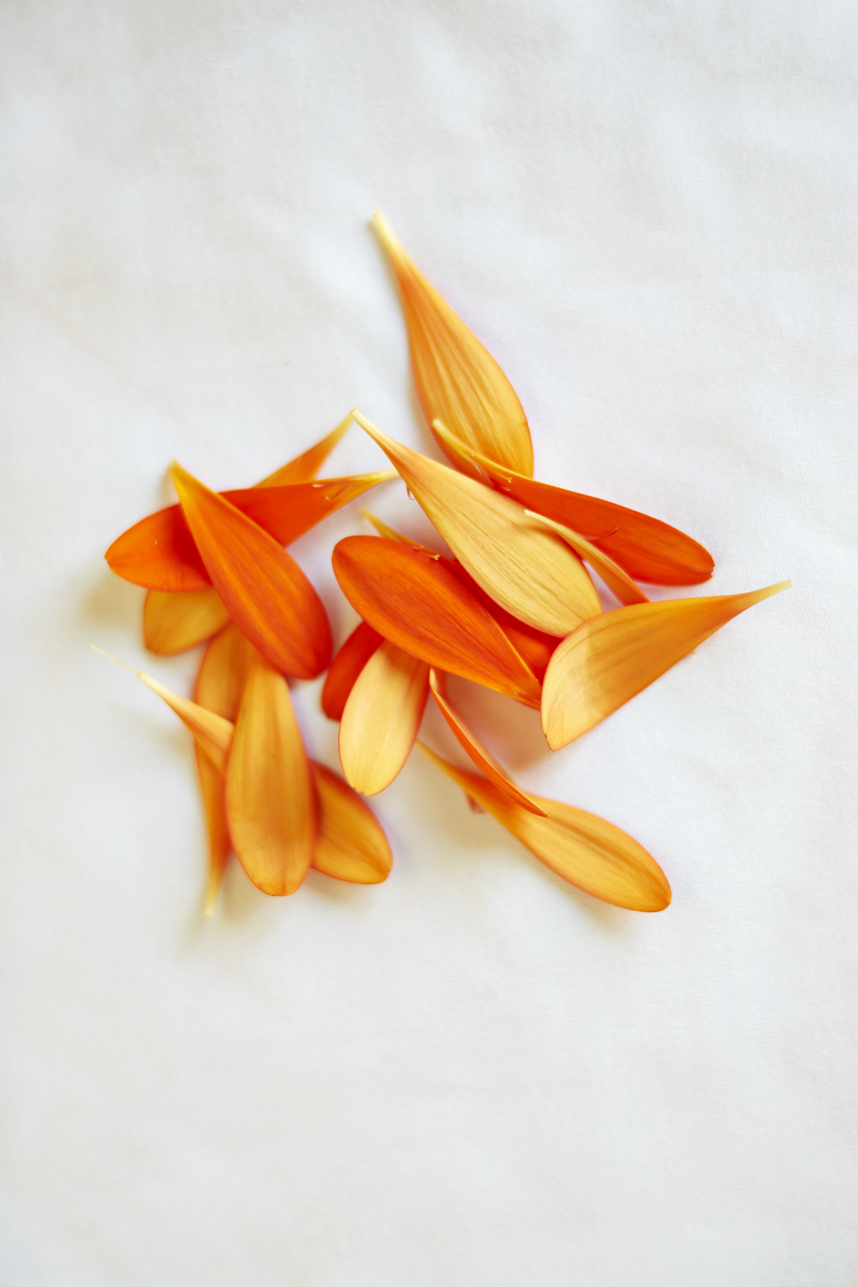- Beskrivning: Blomblad från en orange gerbera, blomma, bild till presentation