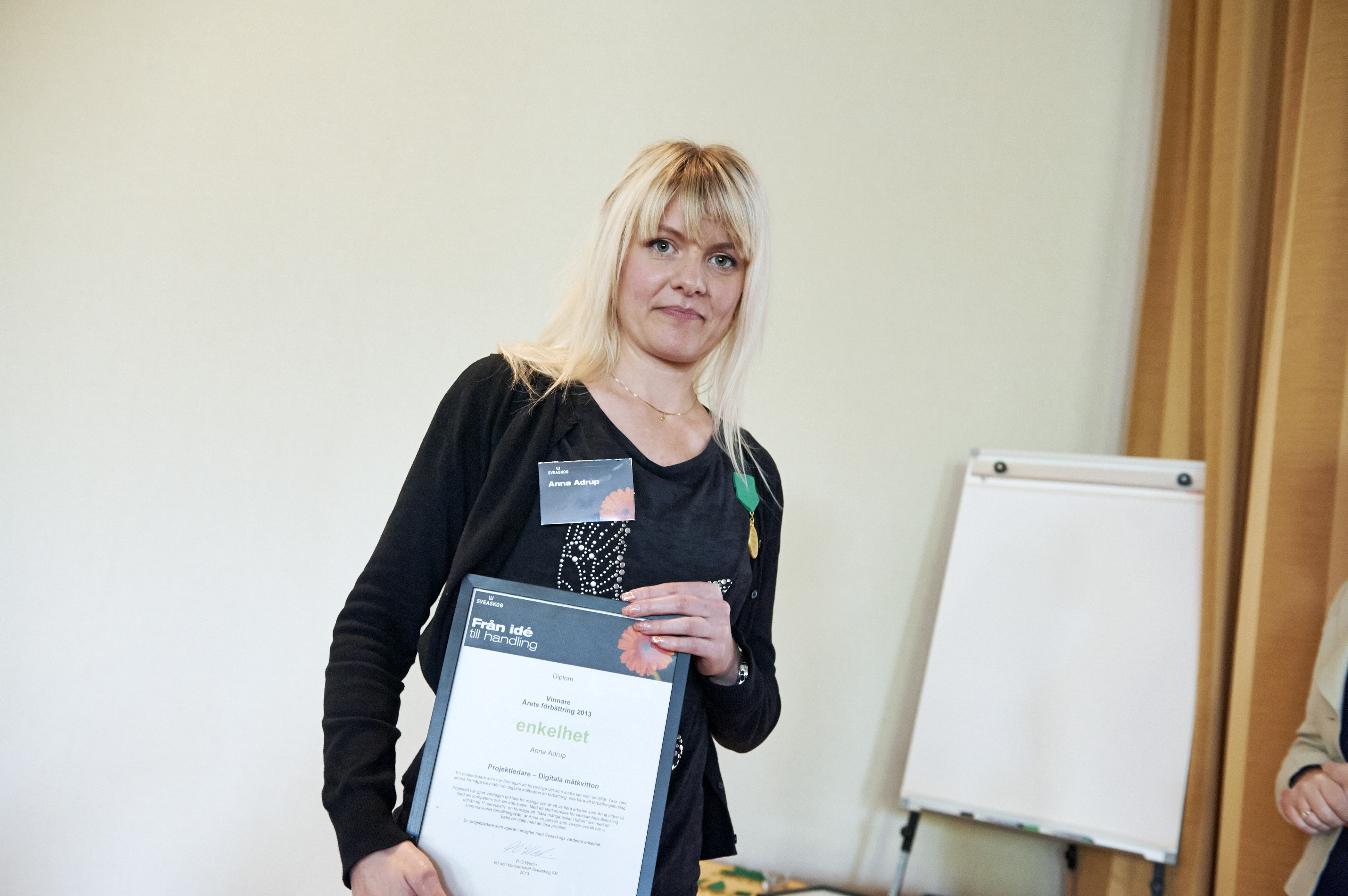 - Beskrivning: Anna Adrup, årets förbättring enkelhet, Ledarmöte 2013