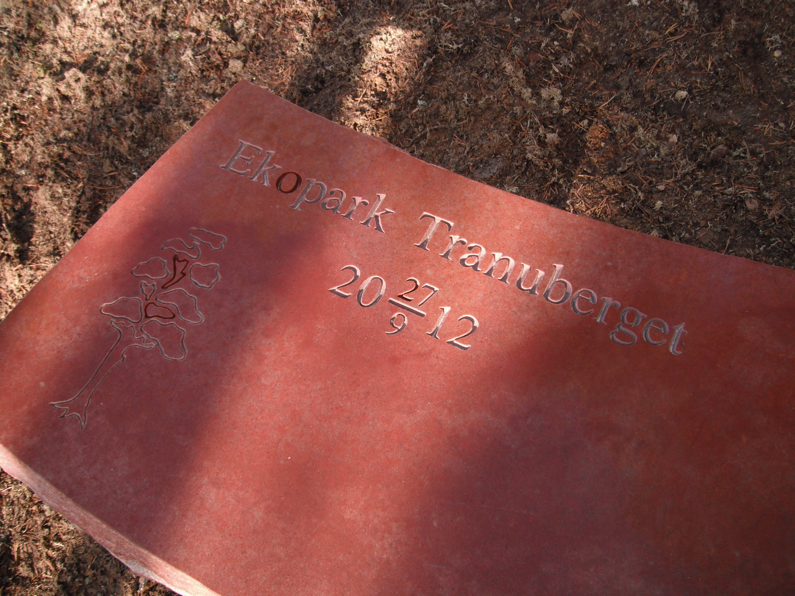 - Beskrivning: Stenbänken i vacker röd dalasandsten. Invigning av Ekopark Tranuberget 2012-09-27