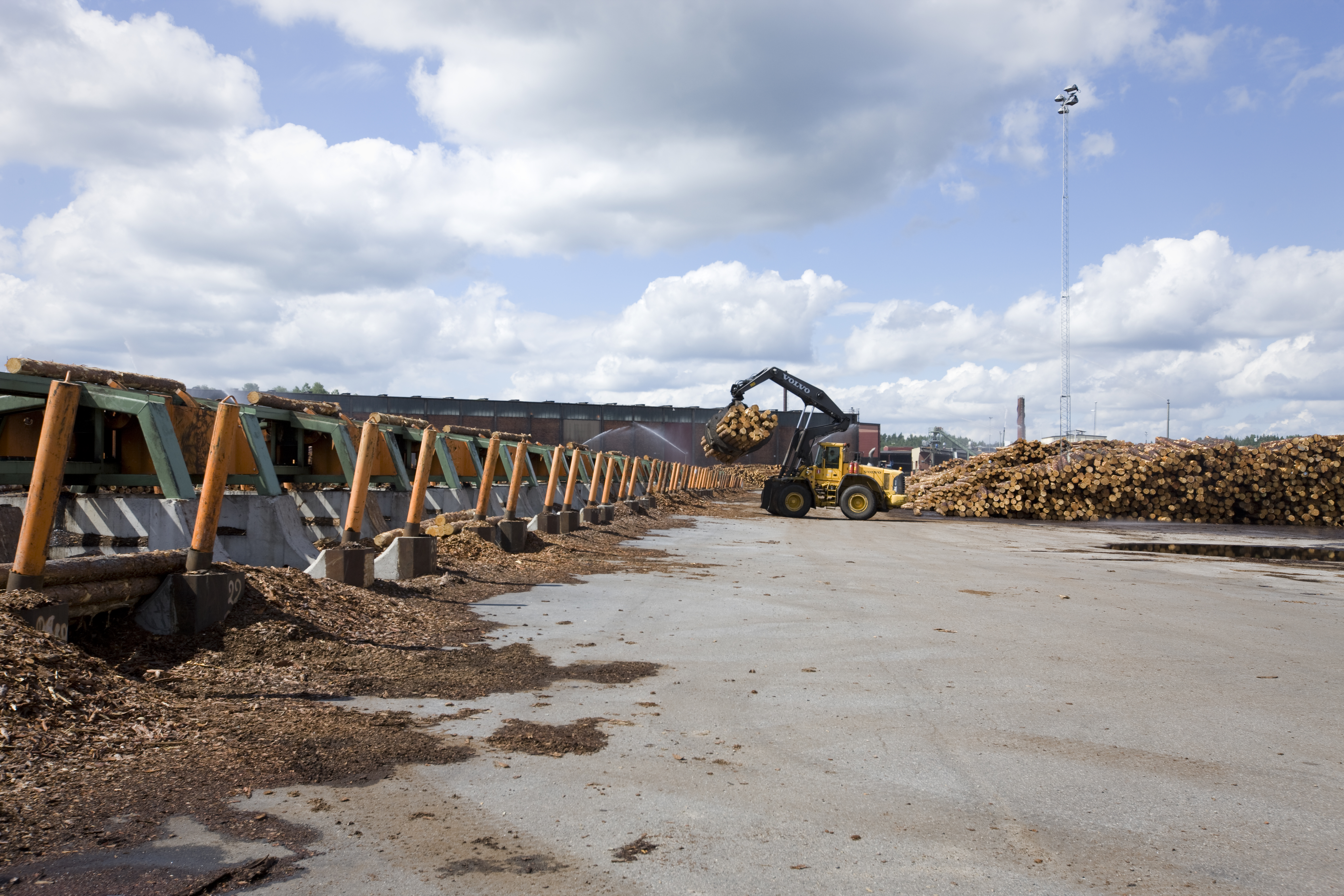 - Beskrivning: Setra, sågverk, traktor, maskin, gripklo, timmer, virke, trä, produktion,