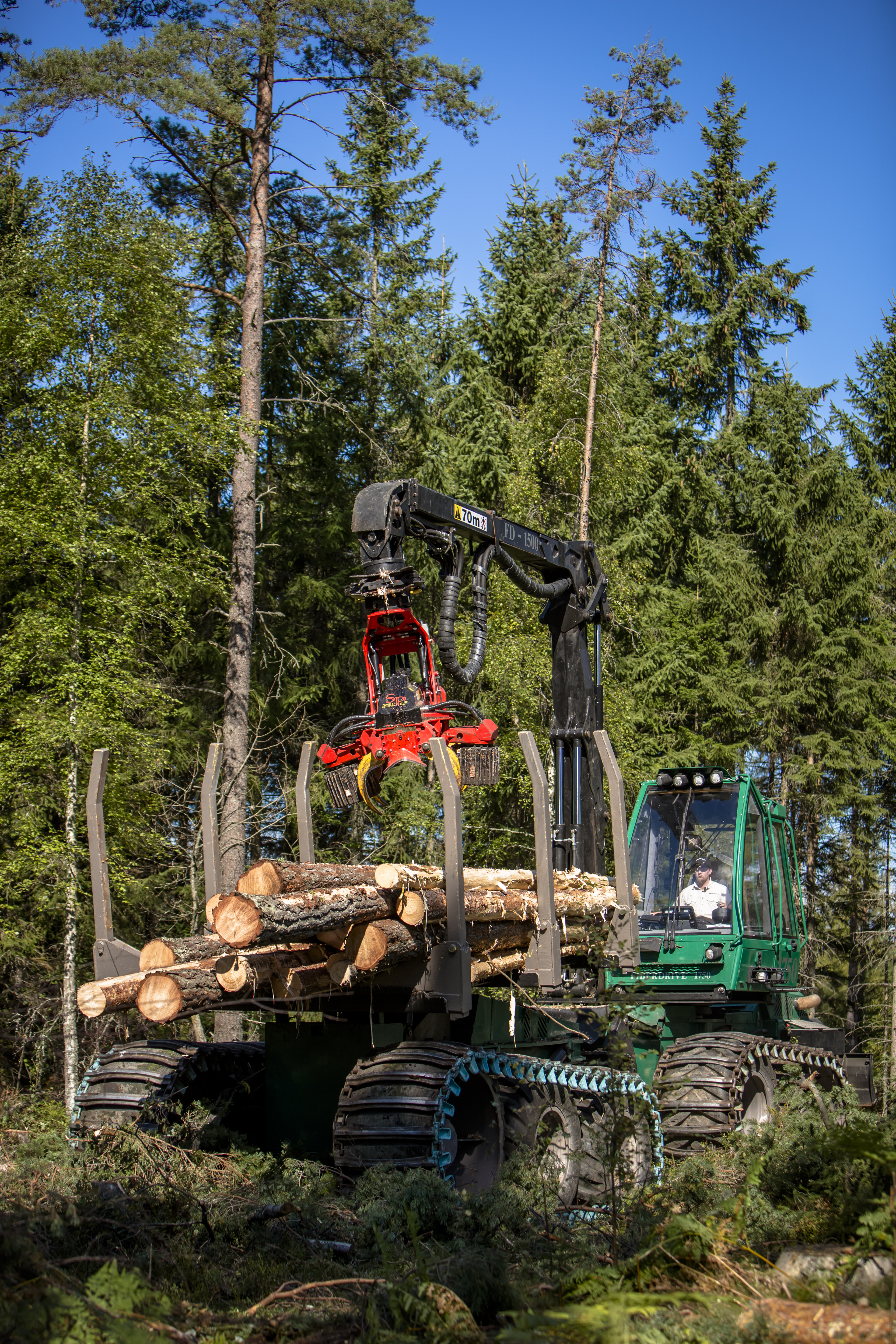 - Beskrivning: trä, teknik, utveckling, skogsbruk, avverkningsmetodik, metod, forum sveaskog nr 5 2013, avverkning, skördare med skotarlass