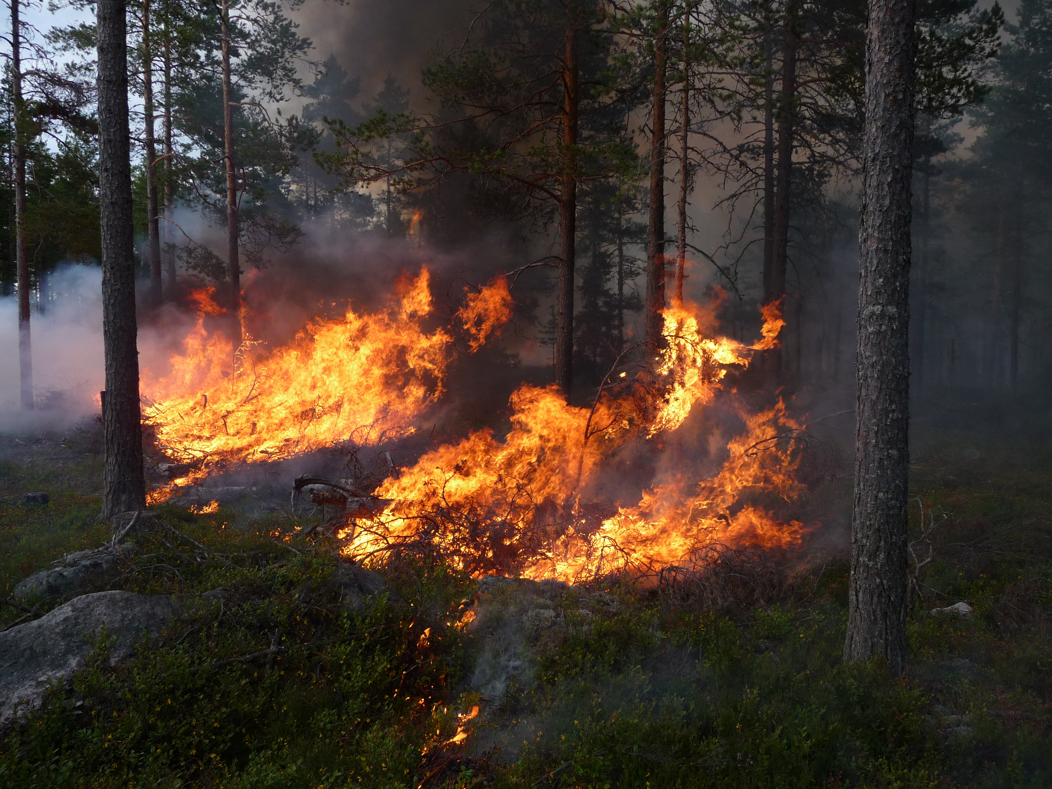 - Beskrivning: Naturvårdsbränningen omfattade 34 hektar tallskog med en medelålder på 110 år, hyggesbränning, brand, rök, eld, natt, mörker, kväll